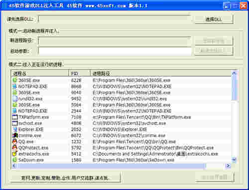45软件游戏DLL注入工具是一款专业的DLL组件注入的软件工具,软件提供了两种dll注入模式,可以在你因为缺失某个dll组件导致应用程序无法正常运行的的情况下帮助你直接下载安装dll组件。软件的使用方法非常简单,只需看一下使用方法中的图片即可。