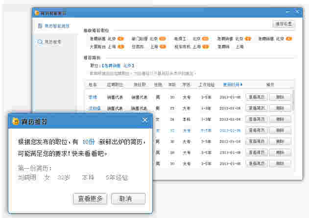 根据您的招聘条件,我向您推荐最新最符合条件的简历,选择面更广,招聘速度更快!