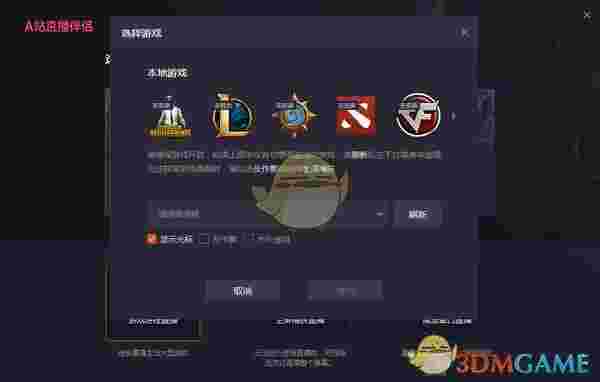 点击游戏选择按钮,弹出游戏选择框,A站直播伴侣会自动识别你已经安装并打开过的游戏。双击可以启动未打开的游戏或者将已经打开的游戏添加至直播窗口,此时将游戏放到全屏,直播伴侣便可直接读取游戏页面到已添加的窗口。
