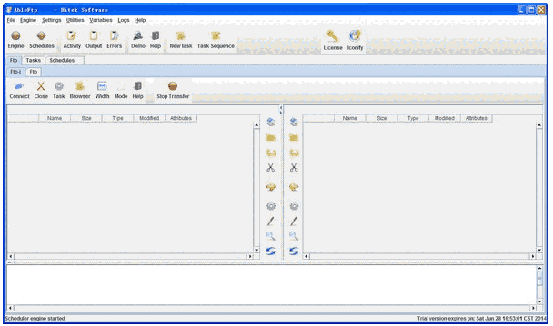 AbleFtp免费版(ftp上传工具)是一款与众不同的ftp客户端程序,用于自动安排ftp传送任务。AbleFtp免费版能通过计划来自动传送或立即传送高级ftp任务,支持用通配符传输多个文件、支持子目录传送、强大而灵活的计划功能、基于任务退出代码的任务失败邮件通知功能等。帮助你节省传送文件所需的时间。可以制定计划等一些高级任务。英文界面,未注册用户可免费使用30天。