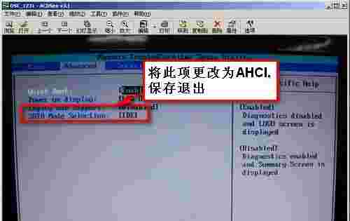 4、重启进入bios,设置硬盘模式为ahci《或sata》模式并保存退出进入系统,如能顺利进系统而不出现蓝屏,即说明安装正确,如果蓝屏就重新设置bios中硬盘为ide兼容模式,进系统后重复上一个方法。
