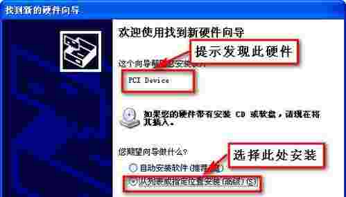 4、选择新硬件导向,点击【从列表或指定位置安装】,选择完成后点击【下一步】。