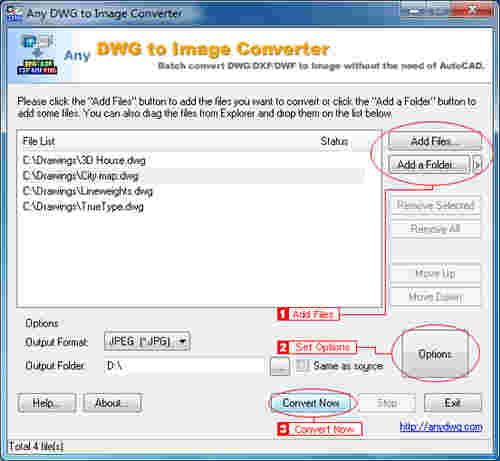 运行图的图像转换器,点击“添加文件”按钮来添加DWG / DXF / DWF文件到转换器。