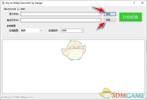 1、点击浏览设置源文件夹位置和输出文件夹位置