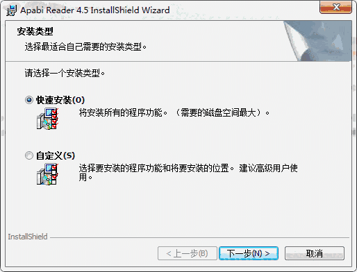 1、首先在该页找到下载地址处选择任意地址将Apabi Reader软件包下载至本地,下载后双击解压找到.EXE格式程序并运行。如下:需要我们选择安装方式,选择完单击【下一步】开始安装。