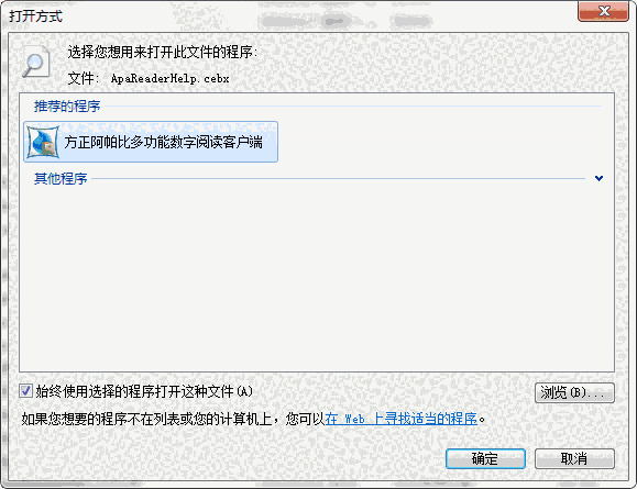 2、进入到选择打开程序界面,我们直接选择【方正阿帕比多功能数字】程序即可,如果没有可以选择【浏览】进行查找。