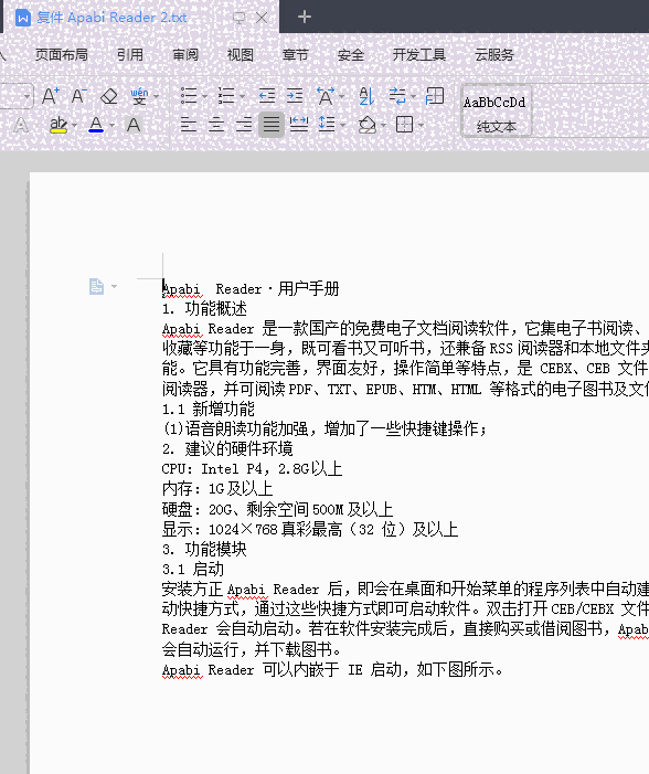 1、Apabi Reader是不支持直接转换Word格式,但是我们可以将Apabi Reader打开的文档先转换成text格式后再用word打开工具进行浏览。