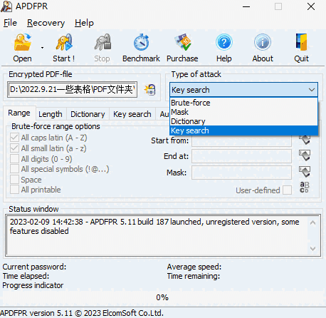 APDFPR是一款功能强劲且高端实用的PDF密码恢复的软件,APDFPR能够立即解锁PDF限制,并启用编辑,打印和复制锁定的PDF文件。通过可配置的攻击恢复原始的PDF密码。借助专利的雷霆表技术,在一分钟内打破40位加密,对于办公人员的帮助有显著的帮助。