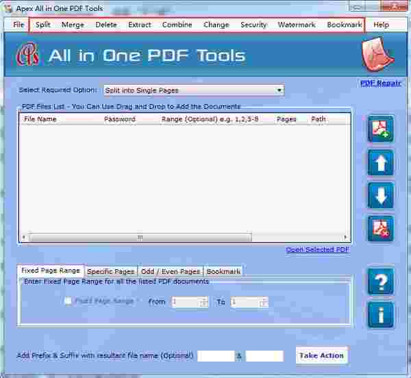 拆分功能:Apex All in One PDF Tools官方版可将pdf文件拆分为单页或者按一定范围拆分。