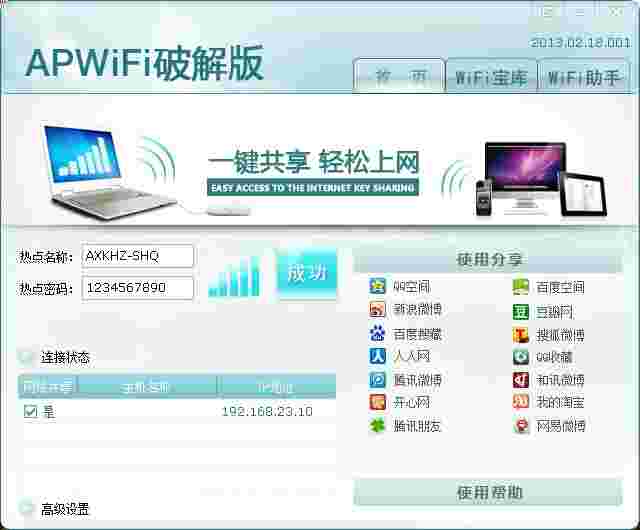APWiFi免费版是一款专业的网络连接共享的软件工具,软件可以基于电脑拥有无线网卡的前提下新建一个WiFi热点供其它设备连接上网。非常方便快捷,软件界面简约,布局直观清晰。操作简单,容易上手,是一款十分实用的工具。