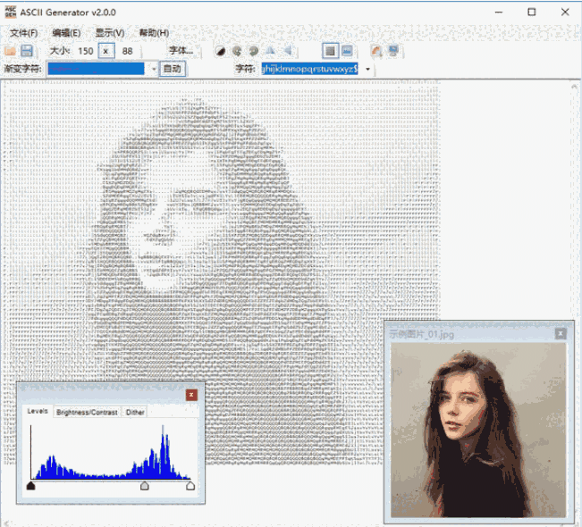 支持手动调整ASCII码密度水平,图片亮度、对比度和抖动程度