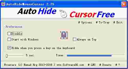 有时候在我们编辑文字或者处理程序时,鼠标光标往往变得有些鸡肋,怎么隐藏它呢?该软件就具备了这个功能,内置一个自动计时的定时器,过了指定时间就会自动隐藏光标,非常方便。