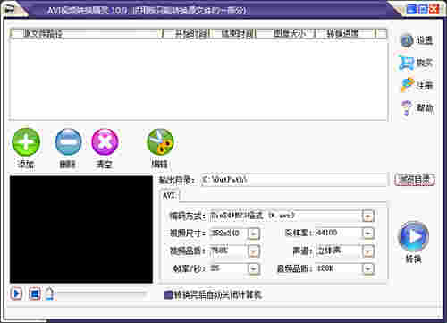 支持几乎所有的视频格式转换输出 AVI (DivX/XviD/MJpeg/DV 编码) 格式