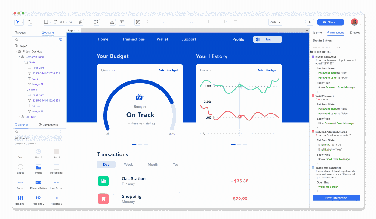 线框工作区也称为页面工作区。线框工作区是原型设计的主要区域,您可以在这里设计线框、流程图、定制组件和模块。