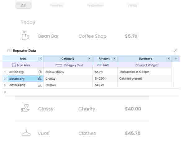 将窗口小部件变成中继器,并将数据列绑定到窗口小部件!