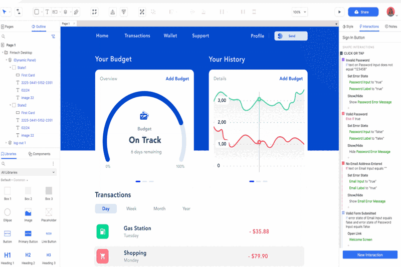 使用条件逻辑、动态内容、动画、数学函数和数据驱动的交互来创建简单的点击图或功能强大的丰富原型,而无需编写任何代码。