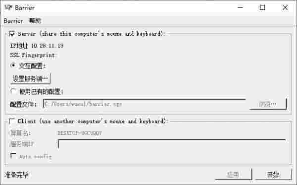 Barrier官方版是一款非常实用的模仿KVM切换器软件,软件功能强大,使用起来非常的简单,支持键盘热键自定义设置,可以根据个人操作喜好设置快捷键,帮助用户轻松的使用单个键盘和鼠标来控制多台电脑,支持服务端默认配置和已有文件配置,可以打开本地文件配置选择已有的配置文件,点击开始按钮即可进行KVM切换软件操作,有需要的小伙伴快来下载体验一下吧!