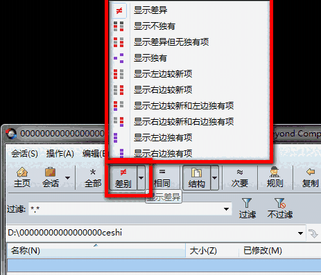 页面上方可以选择“全部”、“差别”等。选择后结果就会自动呈现。