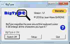 BigType是一款轻巧便携的免费软件,可以实时放大您输入的所有字符。