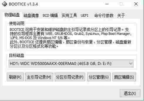 BOOTICE 可用于安装、修复或备份指定磁盘的主引导记录或分区上的引导记录。
