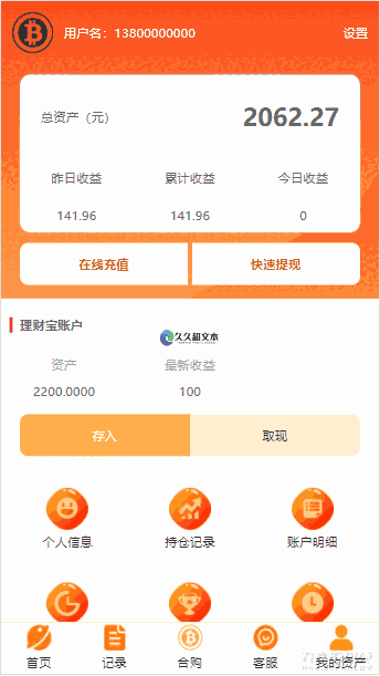 BTC理财/BTC contract/K线完整带余额宝/内置客服系统/超完美/带搭建教程