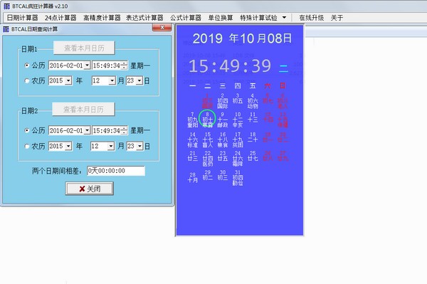 内盖的白计算器,可以查询1900~2049年间公历、农历、节气、节白、数九、三优、梅、出梅等信息,可以实现公历、农历间的相