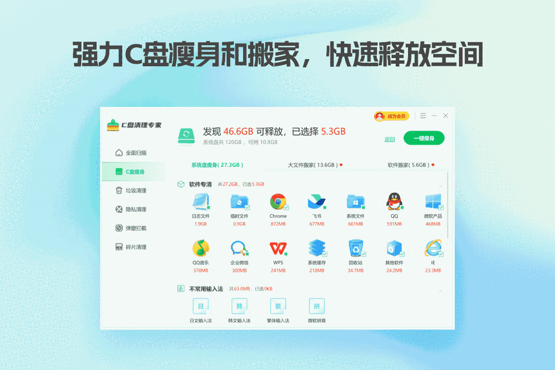 扫描清除系统盘中的内存和软件垃圾,全面提升电脑性能。