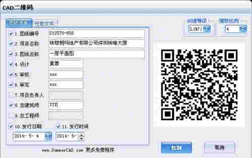 CAD绘制二维码是一款专业的cad二维码的绘制工具软件。使用者可以通过软件来绘制CAD二维码。软件的界面设计简单直接,功能丰富实用,软件的使用方法也很简单,将预设好的信息进行输入包括图纸编号、项目名称等,之后点击绘制即可。