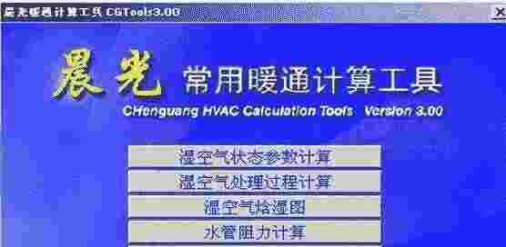 CGTools工具箱是一款专业的常用暖通的计算工具软件。软件可以帮助使用者快速计算湿空气状态参数、湿空气处理过程、水管阻力等等参数。软件的界面非常简单,只有几个计算方式的按钮,需要计算那个参数点击相应的按钮即可。