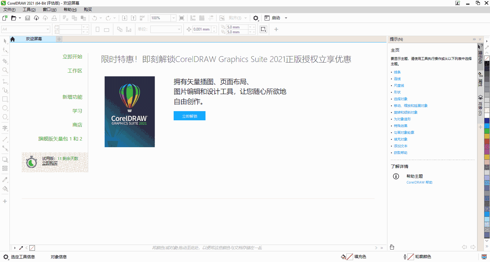 使用色板可以轻松地将颜色应用到填充和轮廓,或者根据颜色和协调生成颜色。改变对象的透明度,用图案、渐变、网格填充等填充。