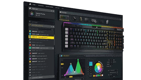 RGB驱动的界面更为直观,并且整合支持所有海盗船相关的RGB外设产品,用户可以通过它来DIY功能定制属于自己的RGB背光照明,还有在线同步功能。