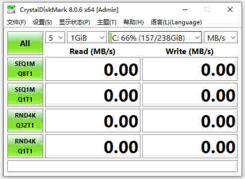 默认:SEQ 1MiB Q8T1,SEQ 1MiB Q1T1,RND 4kb q32t 1,RND 4kb Q1 t1