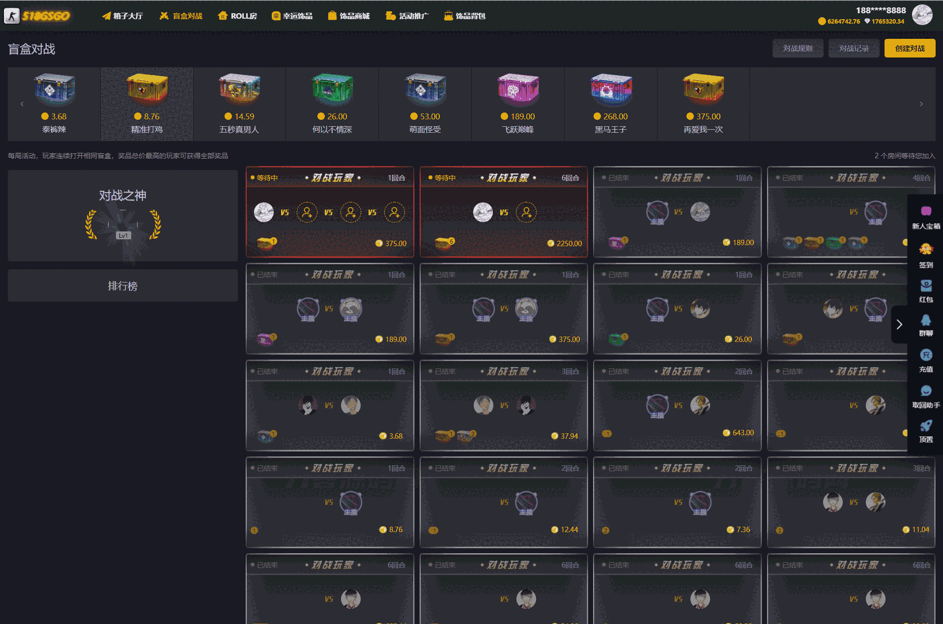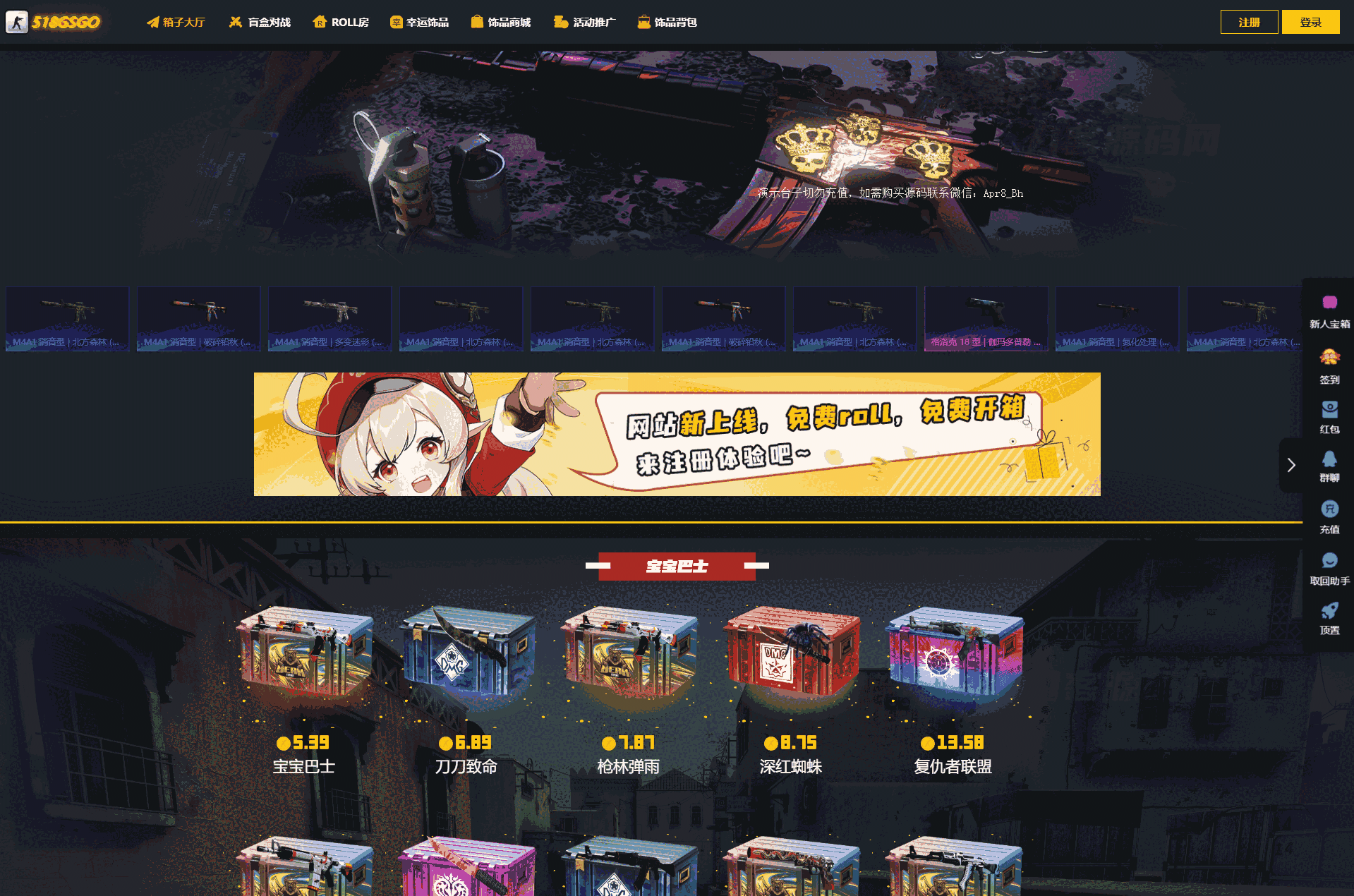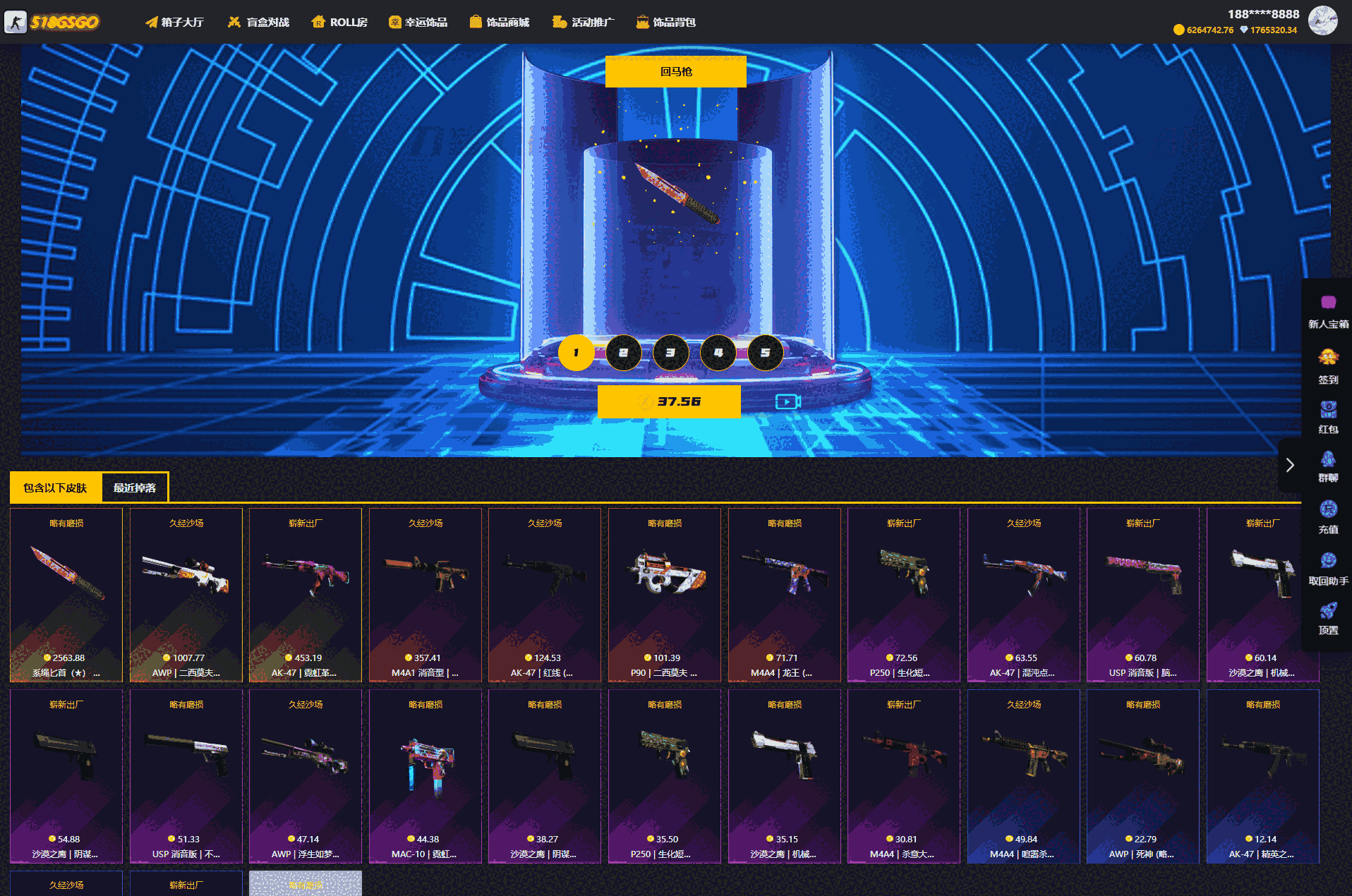 CSGO游戏盲盒开箱源码 盲盒对战、幸运开箱、积分商城、Fl盲盒