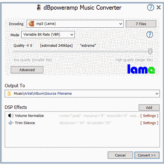器使用音量归一化或采样/比特率转换处理音频, 具有 30 多种效果 dBpoweramp 是一款功能齐全的 mp3 转换器。