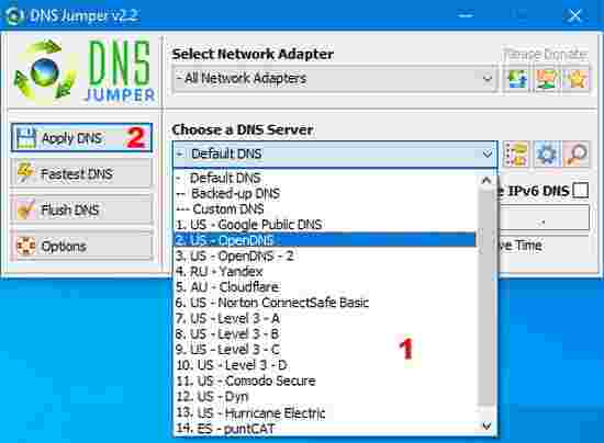 5. 可以手动更改 DNS 服务器,但 DNS Jumper 大大简化了过程;