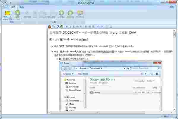 DOC2CHM支持Microsoft Word 2000或更高。微软Word 2007 .docx 文件也支持。