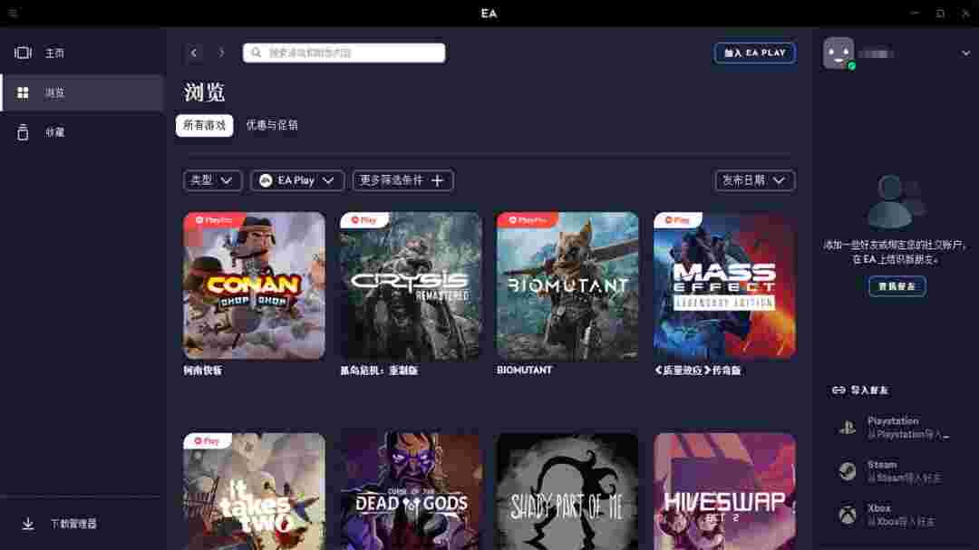 EA app是一款功能强大的游戏社交平台软件,软件操作简单易用,支持跨平台交互,玩家可以在这里体验EA的所有游戏内容,快速优化的平台让您更容易找到、下载和玩游戏,拥有庞大且日益丰富的游戏库,轻松游玩您喜爱的游戏,满足用户的不同需求,有喜欢的朋友快来下载体验吧!