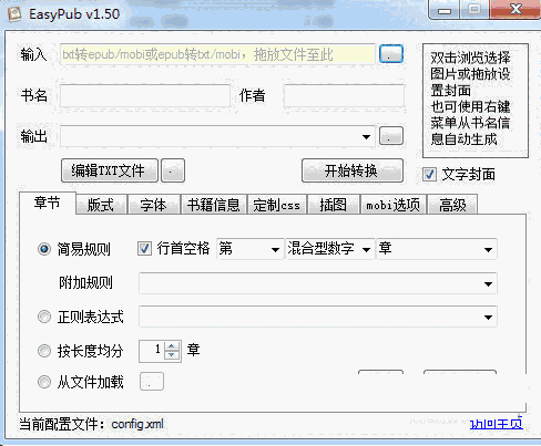 EasyPub是一款专业的epub格式文件制作的软件工具,软件支持生成epub文件、可以直接插入html的代码、定制css、gbk/unicode/utf8格式的文本输入等。十分方便快捷,界面简约,布局直观清晰,操作简单,极易上手,是一款不可多得的利器。