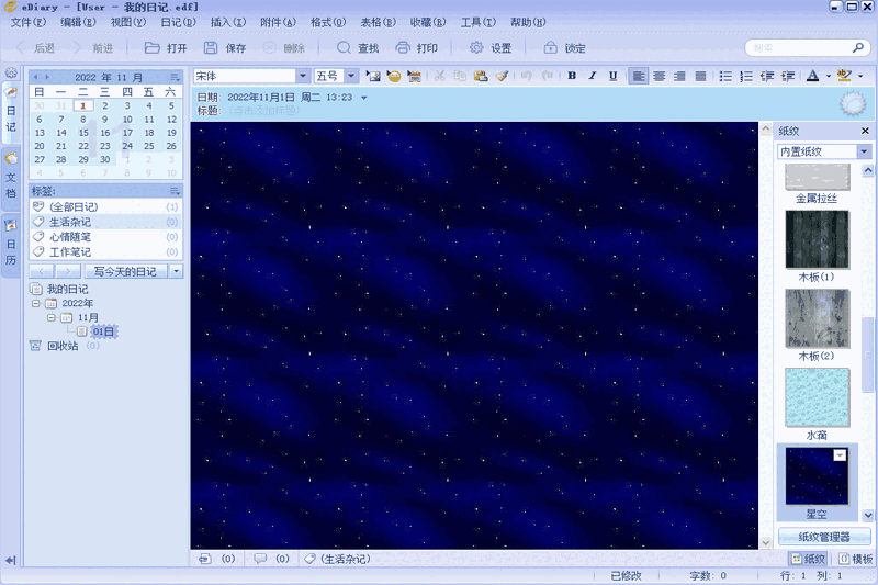 EDiary是一款专业的日记或文档编辑的软件工具,软件需要注册用户才能使用,很好的保护个人的隐私。软件支持文档编辑、打印及打印预览等等功能。十分方便快捷,界面简约,布局直观清晰,操作简单,极易上手,是一款不可多得的利器。