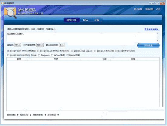 Web是电子邮件ID的无限来源。您必须插入搜索关键字(例如:小型企业),选择多个搜索引擎,按搜索并坐下。它能够使用这个世界上所有主要的搜索引擎进行提取。