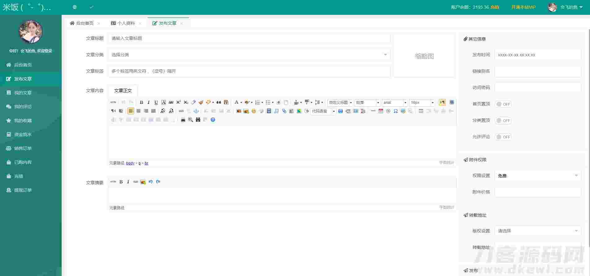 发布文章:强大的发布文章功能,但是部分功能需要模板的支持