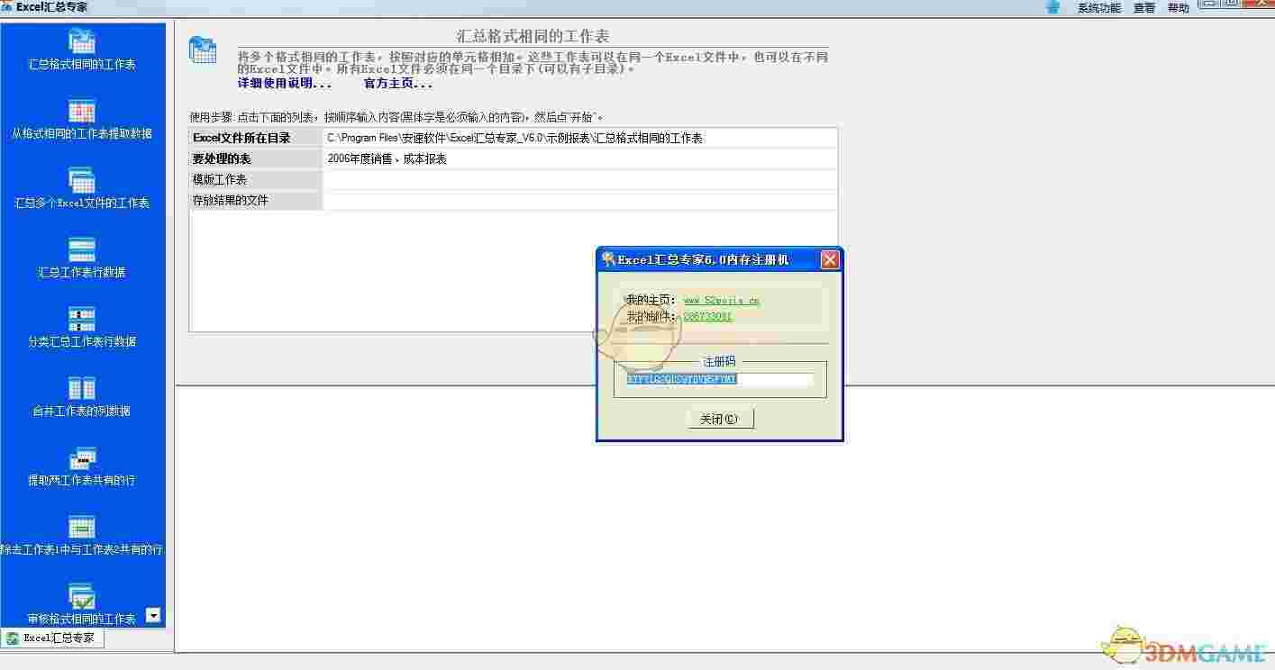 “Excel汇总专家”是一款共享软件,您可以先下载试用,觉得满意后再付费成为注册用户。本软件在未注册之前会有“一次只能汇总3个Excel工作簿”的功能限制,如果您在试用后决定一直使用下去,请通过本站向软件开发者支付 398.00 元/套的注册费用,以获得该软件的使用授权和软件开发者提供的技术支持与服务。