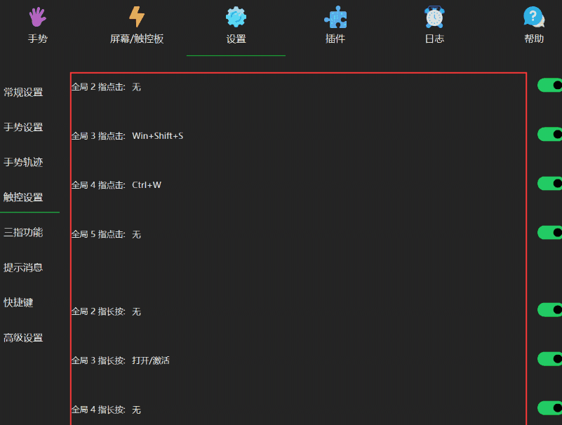 3、手势提示:如果设置的手势太多想不起手势快捷键,不妨开启手势提示功能。