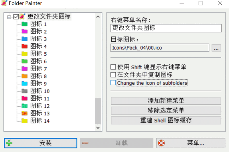Painter官方版是一款相当实用的文件夹变色工具,旨在为图标文件夹添加颜色与样式效果,从而便于用户更轻松的进行查找,其具备了丰富的文件夹图标包,您可以快速进行安装,并一键进行应用,当然,您在安装前可以进行预览,并根据自己的喜好自定义添加图标包,从而获得您喜欢的效果,有了这款软件,您可以为您的不同文件夹类型添加不同的颜色,从而有效实现标记,为您的资源管理带来便利。