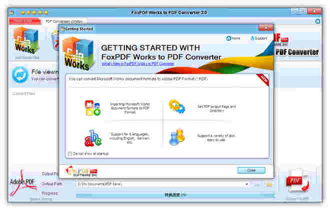 foxpdf作品到pdf转换器支持多种版本的作品文件,支持2010、2007、2003、2000、97等格式的作品文件;
