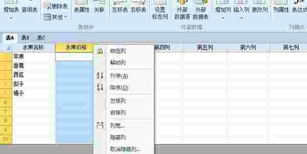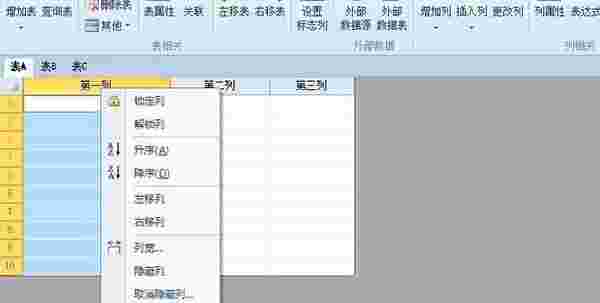 2、鼠标左键选择需要修改的列,右键选择列的属性选项菜单