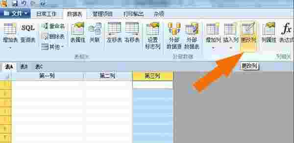 4、接着,在表格中,选择列,并鼠标左键单击“更改列”