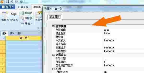 3、在弹出的列的属性窗口上,可以看到列的参数名称