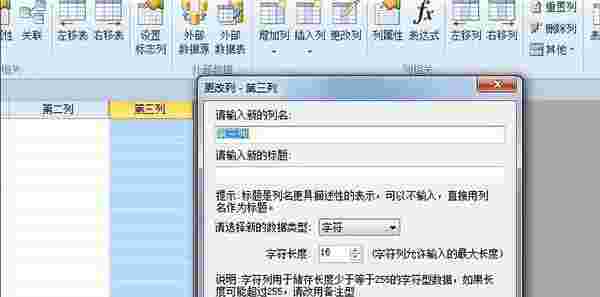 5、然后,在弹出的“更改列”窗口上,可以看到列的名称和字段名称