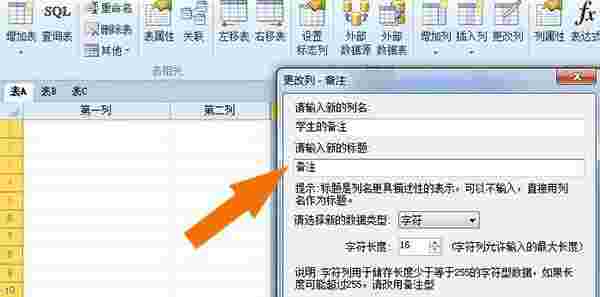 6、接着,在“更改列”窗口上,修改列的名称,比如为备注的名称